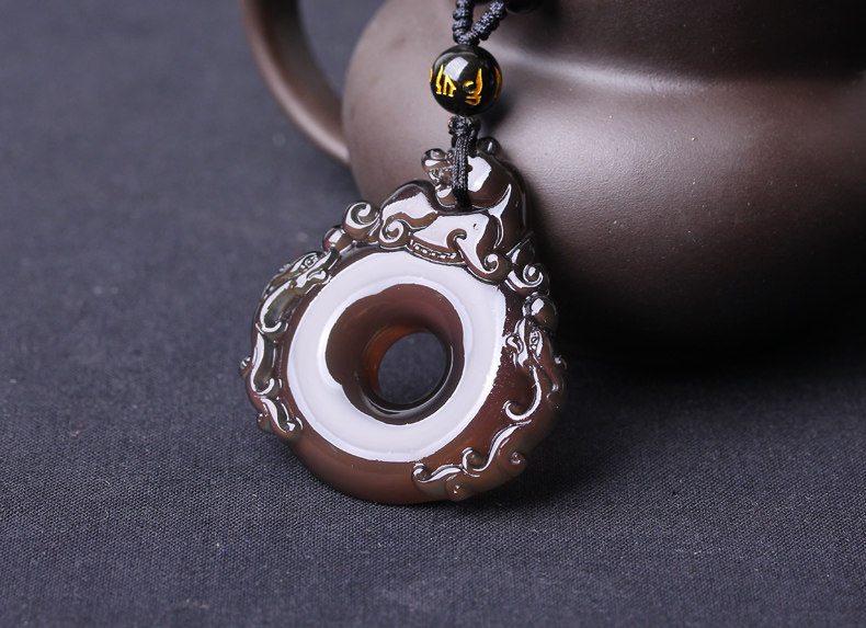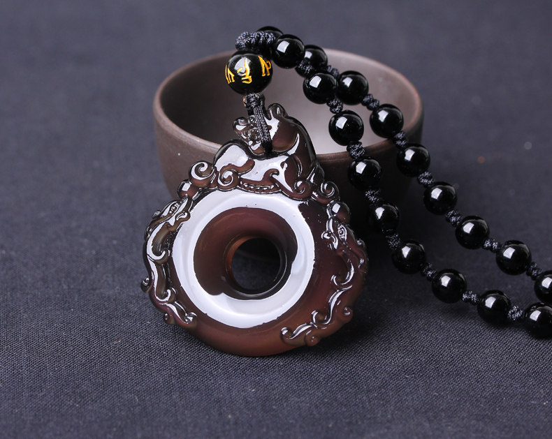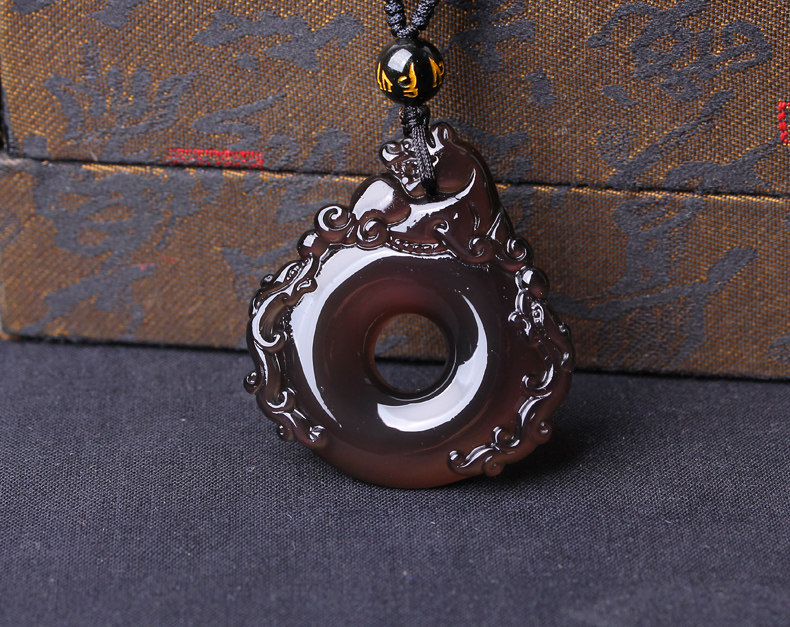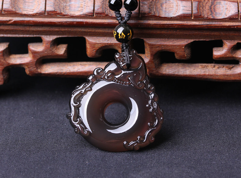 【商品名称】开光 龙蛇保岁黑曜石吊坠 平安扣2017年属鸡本命年吉祥物 精湛