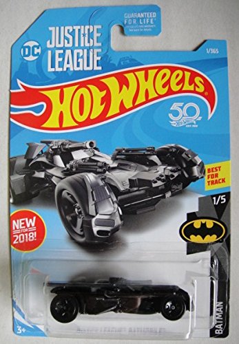 -. Binding : Toy -. Brand : Hot Wheels -. EAN : 0887961540666 -. Feature : 1:64 scaled die-cast vehicle. / Black finish. / 1/5 in the 2018 Batman series. / From the 2017 movie Justice League. -. Label : MATTEL -. Manufacturer : MATTEL -. MPN : FJV39-D9C0A -. PackageQuantity : 46 -. PartNumber : FJV39-D9C0A -. ProductGroup : Toy -. ProductTypeName : TOYS_AND_GAMES -. Publisher : MATTEL -. Studio : MATTEL -. Title : Hot Wheels 2018 50th Anniversary Batman Series DC Comics Justice League Batmobile 1/365, Black -. UPC : 887961540666