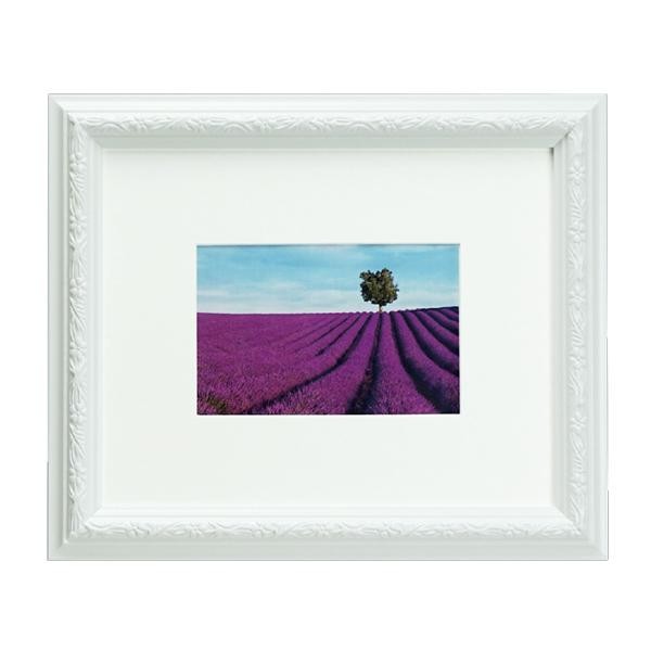 デコラティブな白いフレームがおしゃれな額です。マットを使えばポスト判の作品も飾ることができます。 |