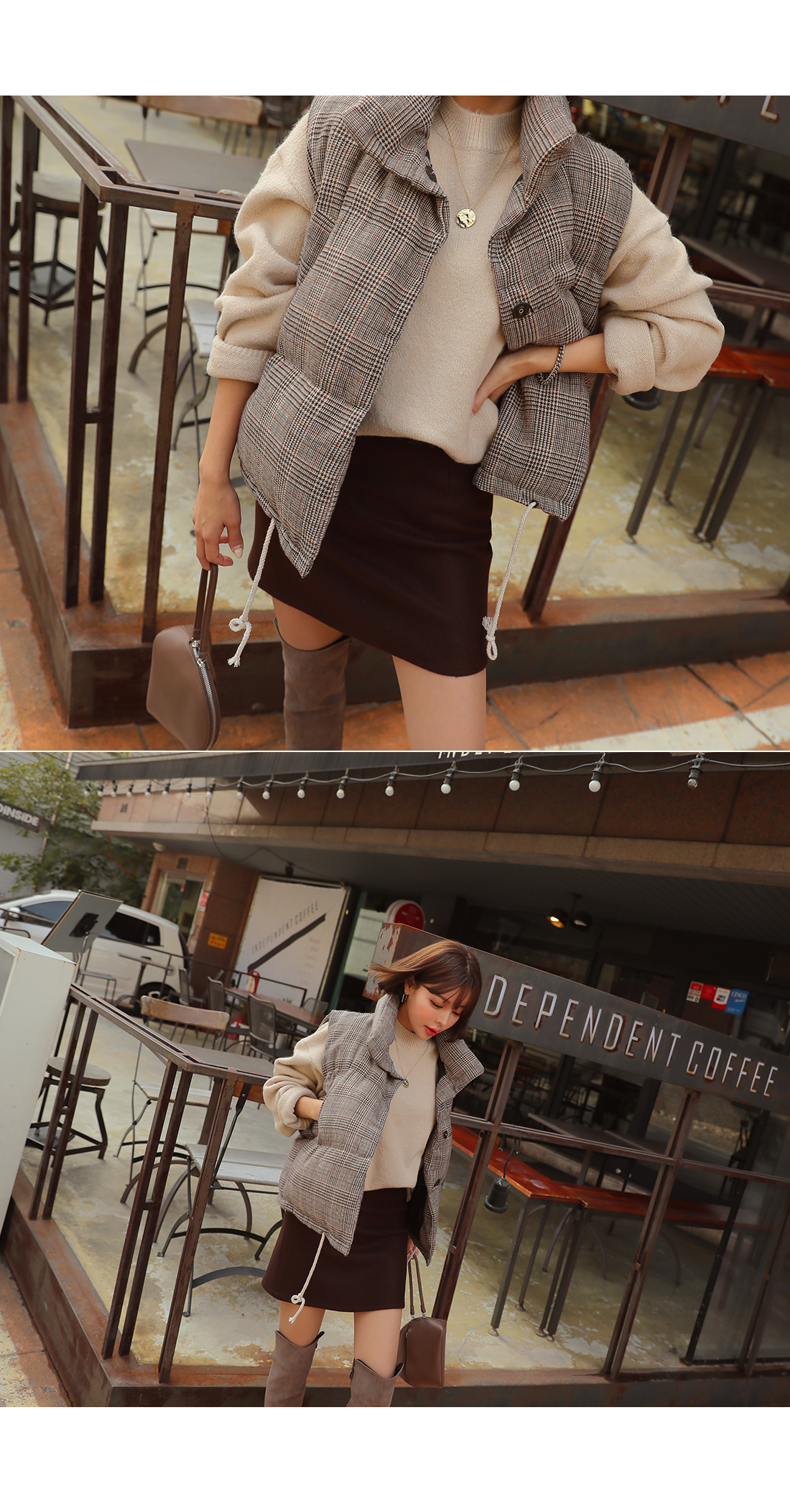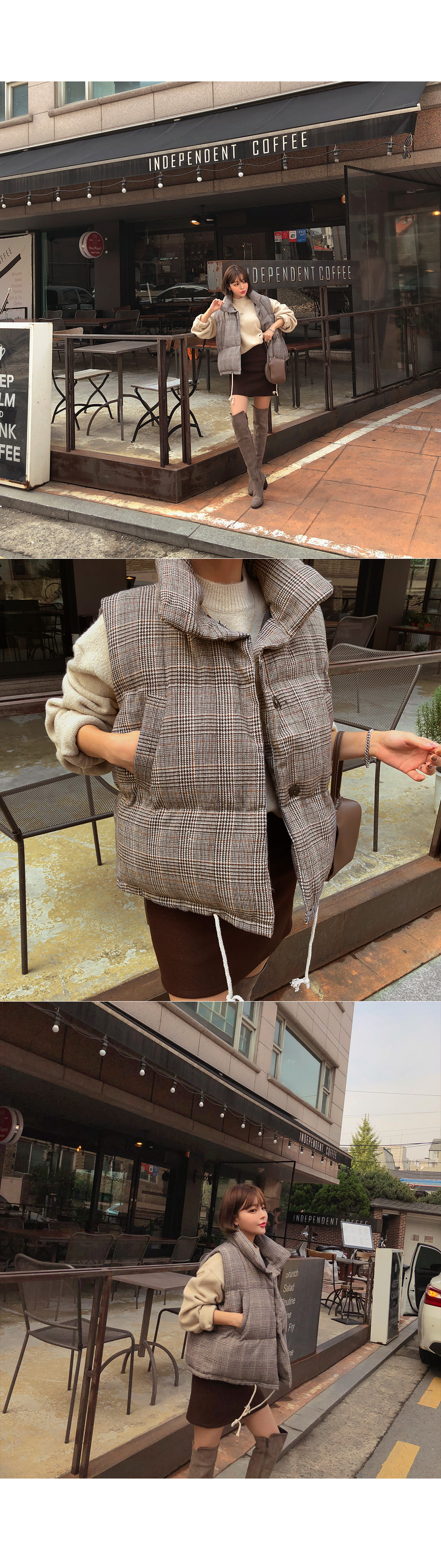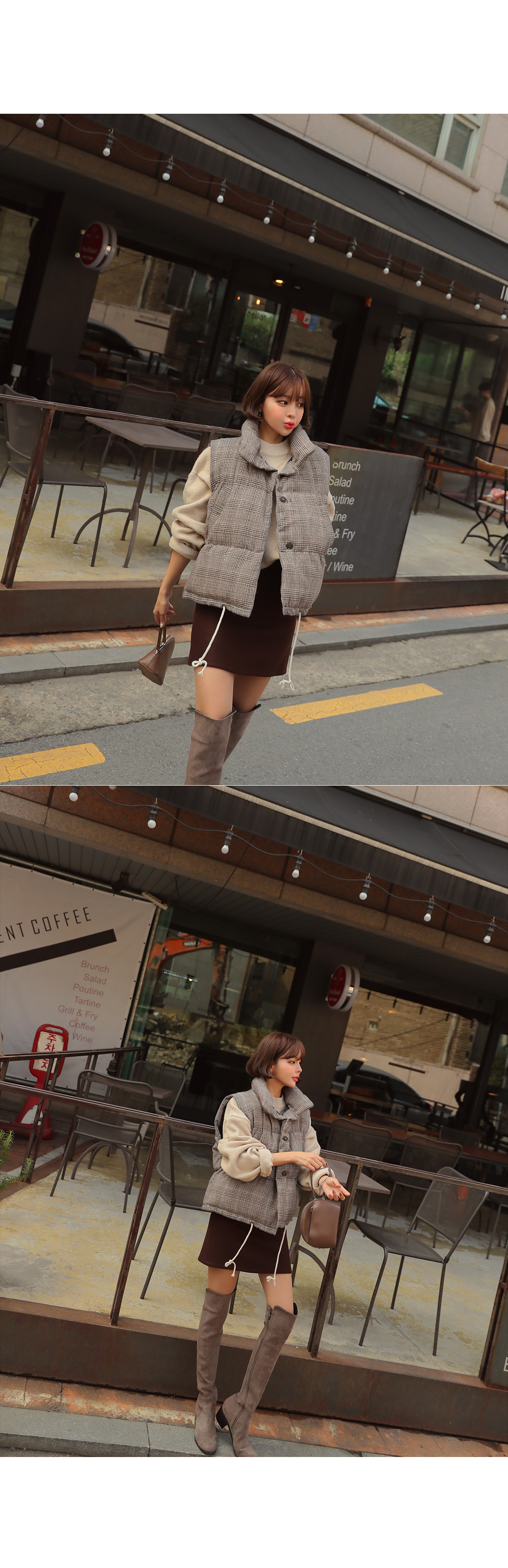 MD COMMENT 캐주얼하고 깔끔하게 스타일링하기 좋은패딩 조끼를 소개할게요.유행을 타지않는 디자인으로 매년 꺼내 입기 좋으며도톰한 소재감으로 FW시즌 즐겨입기 좋아요.네크라인을 살짝 감싸주어 따뜻하게 착용 가능하며충전재는 웰론100%로 보온성이 뛰어나요^^캐주얼한 데일리룩에 가볍게 툭 걸쳐만 주셔도스타일리쉬해 보이는 효과를 느낄 수 있구요.모델처럼 스커트나 데님팬츠 레깅스 등 다양한 아이템과손쉽게 매칭이 가능한 아이템으로 소장하시길 추천해드려요!밑단에 스트링이 라이닝되어 있어 체형에 맞춰 조절이 가능해다양한 핏 연출이 가능하구요.오픈 클로징은 히든 버튼으로 깔끔하게 도와드리며양 사이드 포켓으로 실용성도 갖춰주었어요.COLOR/SIZE 브라운,블랙FREEMODEL FITTING 브라운/FREE