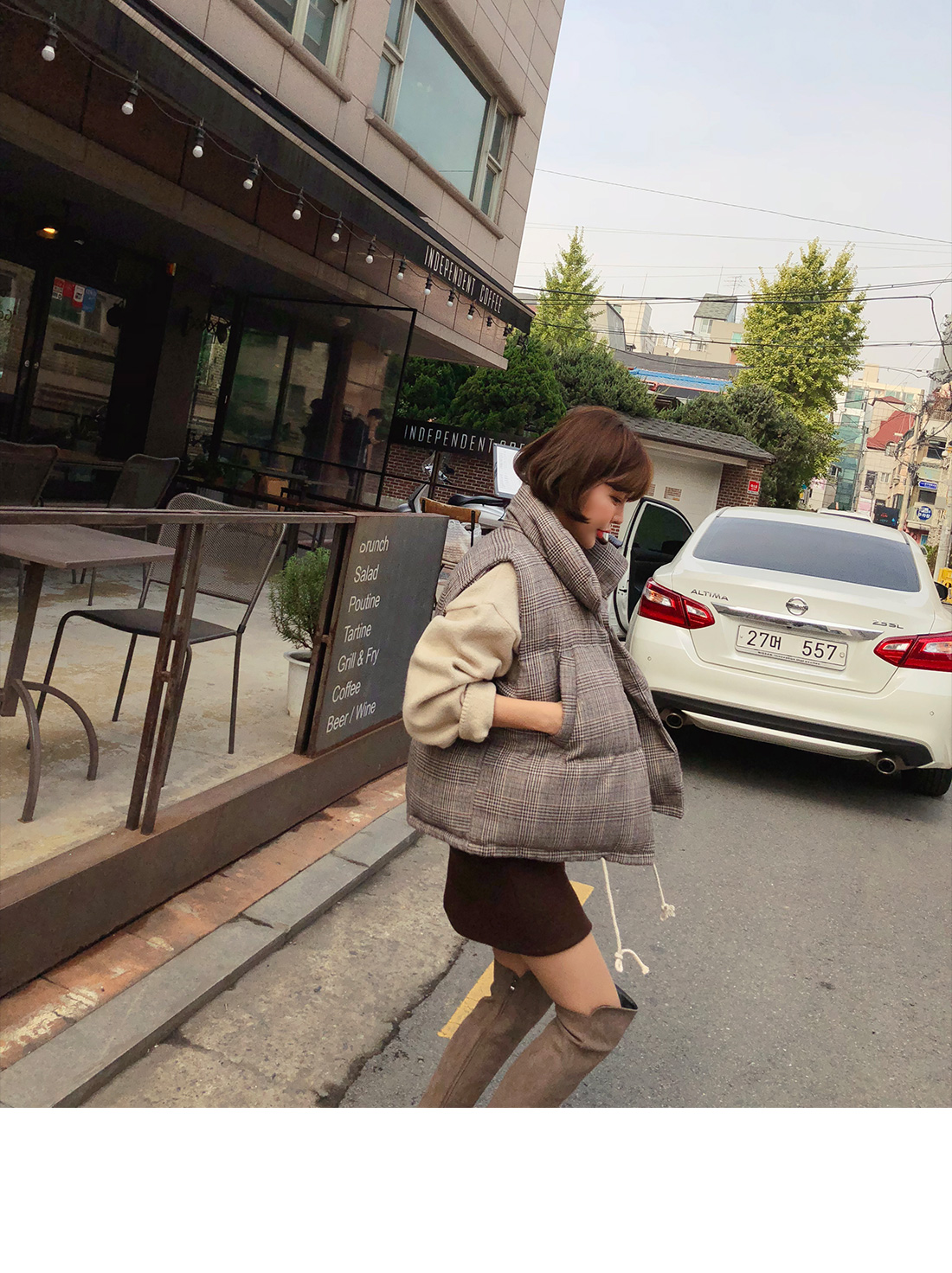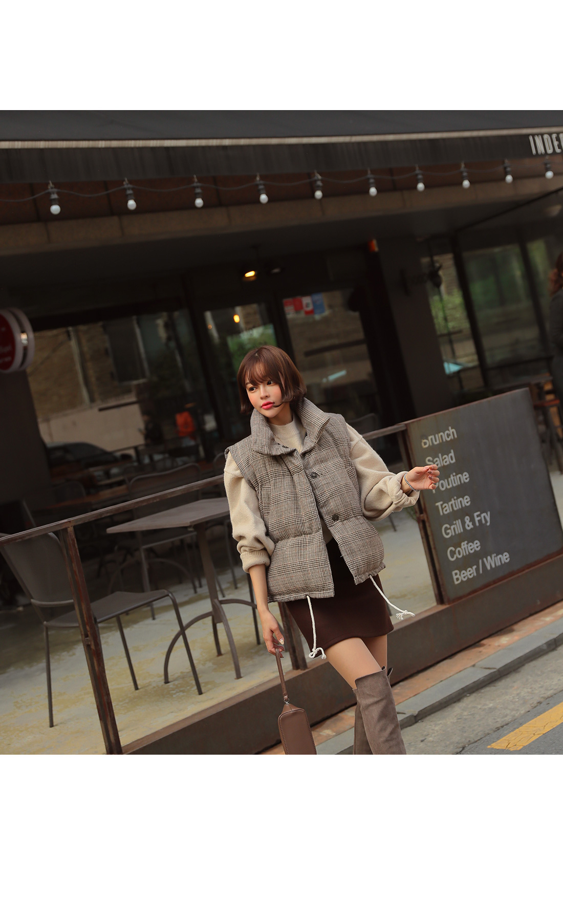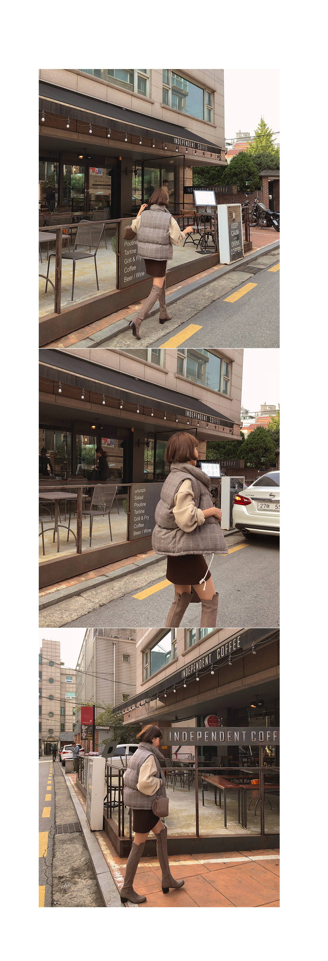 MD COMMENT 캐주얼하고 깔끔하게 스타일링하기 좋은패딩 조끼를 소개할게요.유행을 타지않는 디자인으로 매년 꺼내 입기 좋으며도톰한 소재감으로 FW시즌 즐겨입기 좋아요.네크라인을 살짝 감싸주어 따뜻하게 착용 가능하며충전재는 웰론100%로 보온성이 뛰어나요^^캐주얼한 데일리룩에 가볍게 툭 걸쳐만 주셔도스타일리쉬해 보이는 효과를 느낄 수 있구요.모델처럼 스커트나 데님팬츠 레깅스 등 다양한 아이템과손쉽게 매칭이 가능한 아이템으로 소장하시길 추천해드려요!밑단에 스트링이 라이닝되어 있어 체형에 맞춰 조절이 가능해다양한 핏 연출이 가능하구요.오픈 클로징은 히든 버튼으로 깔끔하게 도와드리며양 사이드 포켓으로 실용성도 갖춰주었어요.COLOR/SIZE 브라운,블랙FREEMODEL FITTING 브라운/FREE