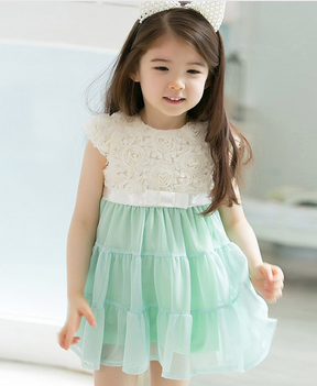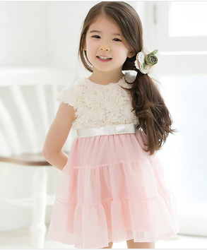 Girls Kids Roses Tops One Piece Dress Tutu Skirts Short Sleeves Costume 2-7Y