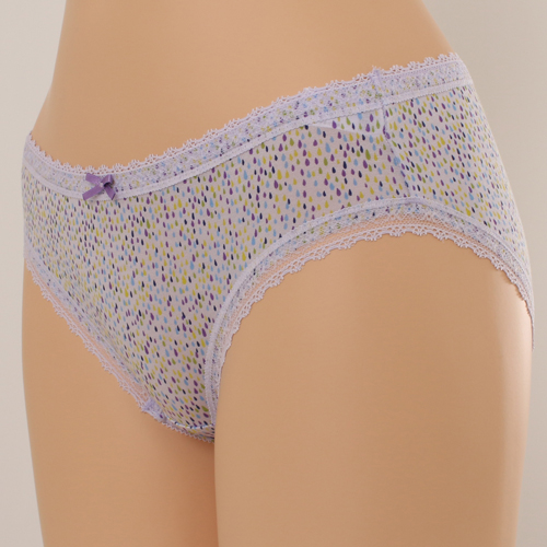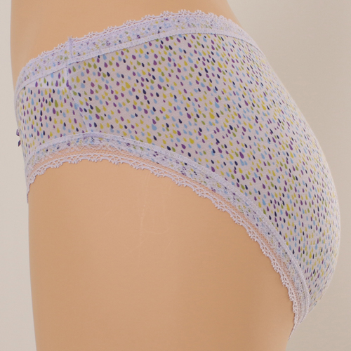 은은한 광택의 물방울 나염소재를 사용하고 허리,다리 둘레에 섬세한 자카드레이스를 매치하여 캐쥬얼하면 서 여성스러운 라인의 반사각제품입니다