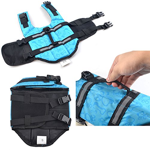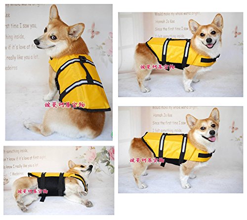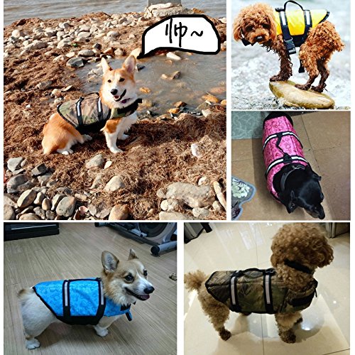 -. Feature : Please MEASURE YOUR DOG before choosing the size. Please use soft measuring tape and select the size based on chest girth (the widest part of ribcage) of your lovely dogs. if your dog is on the line between sizes, go with the smaller size. / High-standard Material- Delicately crafted with high-density, abrasion resistant and dirt-proof 600D dacron oxford cloth and polyethylene foam, offers the maximum comfort and warmth. / FUNCTIONAL: Full-body dog life jacket flotation device supports your pet in and around the water, for maximum swimming enjoyment.BUILDS DOGGIE CONFIDENCE: Boost your dog's swimming and water confidence and make him the center of attention with our fin-tastic swim aid, teaching device and training geat for dogs! / ERGONOMIC INTEGRATED GRAB HANDLE: The integrated grab handle in our dog life vest provides and easy and secure way to handle your dog and makes it quick and easy to guide your dog into and out of the water. / Wider Range Of Velcro Strap- Freely adjusts the tightness, will not restrain the neck and chest and perfectly adhere to your pet's body curve.SALE:The lowest price will last until February.