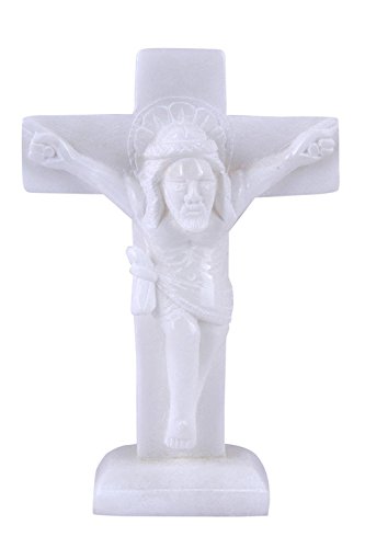 Hashcart (6.5 Inch) White Italian Marble Jesus Cross Statue for Home Décor / Office / Gift