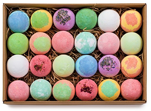 -. Feature : All Natural Ingredients - Our Bath Bombs contain 100% organic and natural ingredients. Absolutely no artificial fragrances or chemicals added, only pure essential oils! / Bath Bomb Gift Set of 24 HUGE Bath Bombs - Gift your loved ones with this elegant value pack of 24 bath bombs. This set includes a fragrance for every mood! Best holiday gift for Christmas, Mother's Day, Birthday, or "just because". Natural Bath Bombs are the ideal gifts for kids. Nurture Me Lush Bath Bombs makes the best bath bombs for kids & adults! / Nurturing & Moisturizing for Your Skin - Infused with Shea Butter, a superior moisturizer with vitamin A that treats many skin conditions such as eczema, dry, flaky skin, wrinkles and spots. / Therapeutic Essential Oils - Made with premium therapeutic grade essential oils, our bath bombs promote a sense of relaxation and calm. Settle into a tub with one of our bath bombs and find yourself in a peaceful oasis of serenity. / Satisfaction Guaranteed - We are certain that you will love your Nurture Me Organic Bath Bombs! We stand behind our products with full confidence and our support team is here for your every need.