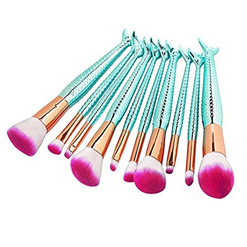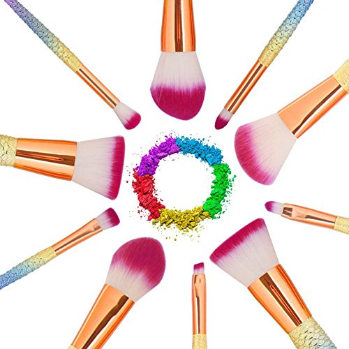 -. Title : JUN_L 10pcs Mermaid Makeup Brushes Set Rose Gold Synthetic Kabuki Foundation Blending Blush Eyeliner Face Powder Brush