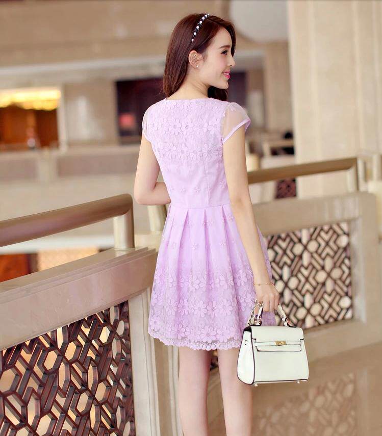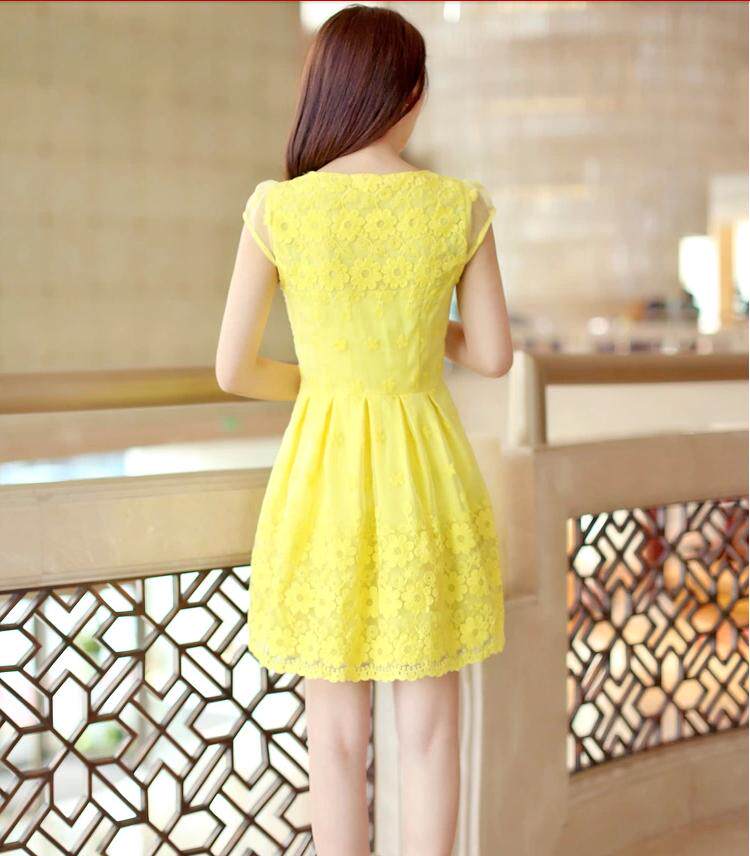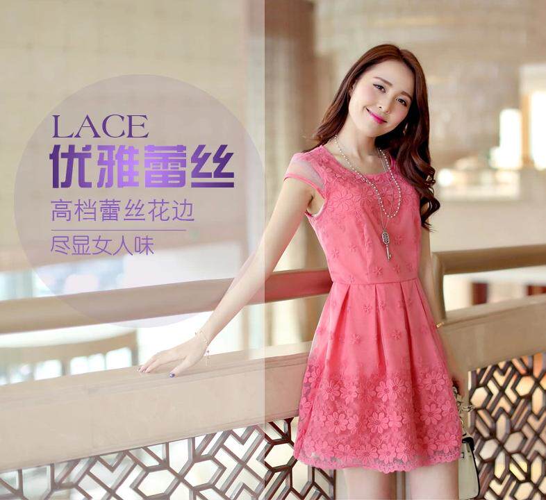 短裙欧根纱绣花蕾丝修身短袖连衣裙蘑菇街美丽说女装