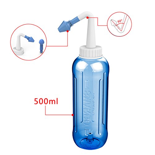Harmony Life 500ml Adjustable Sinus Rinse Treatments Bottle Nasal Irrigation System Hydro Nose Washer Neti Pot for Adult Kid with Allergic Rhinitis (17 oz, Blue)