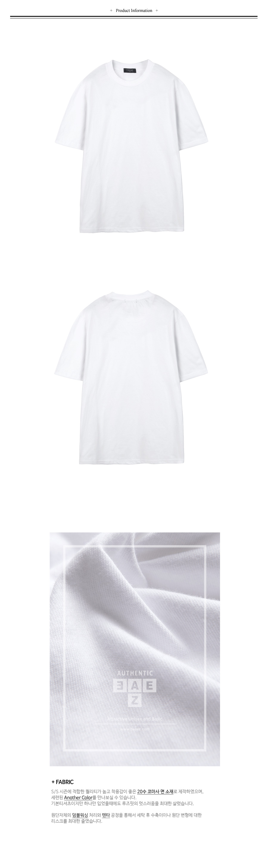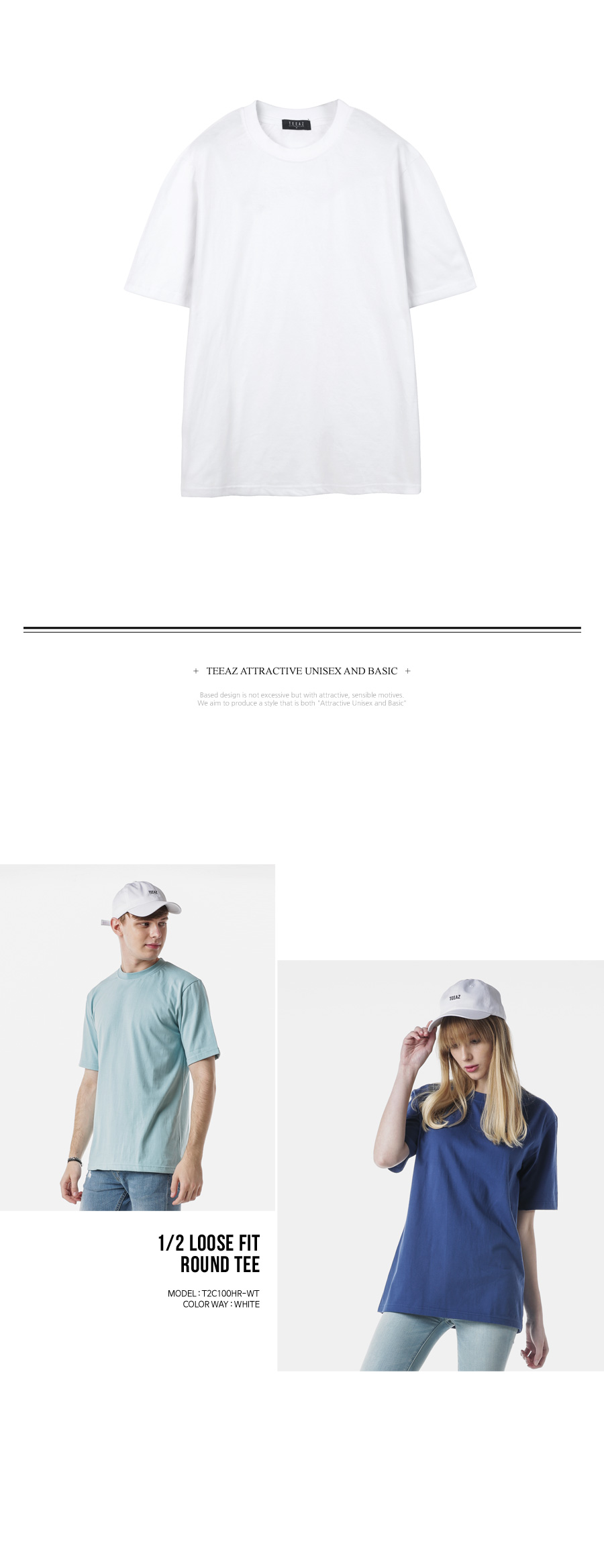[TEEAZ] 1/2 Loose Fit round Tee (White)