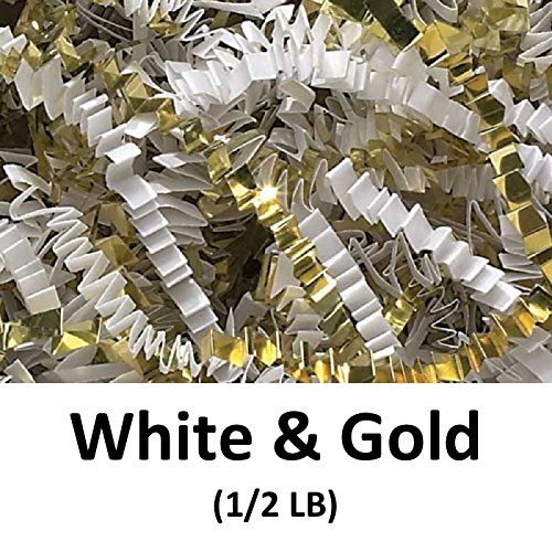 (MagicWater Supply)/Stationery Party Supplies/Gift Wrapping Supplies/DIRECT FROM USA/Crinkle Cut Paper Shred Filler (1/2 LB) for Gift Wrapping Basket Filling - White Gold | Magic...
