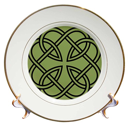 3dRose cp_44274_1 Black Celtic Design on A Moss Green Background-Porcelain Plate, 8"
