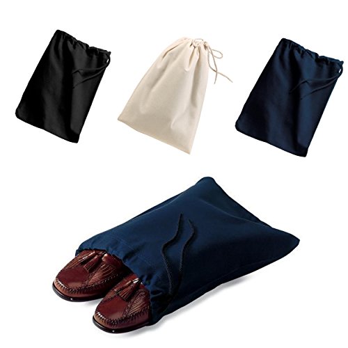 Product Description Cotton shoe bags are inexpensive and very useful when it comes to keeping your shoes safe and clean while traveling. They are reusable and earth friendly. Sturdy cotton bags are also long lasting.. You can also add your logo on these wholesale shoe bags for brand awareness. They come in 3 Perfect colors to match your shoes and brand.. ADD TO CART now to get these cotton bags in just a couple of days.. 0