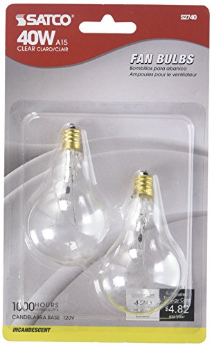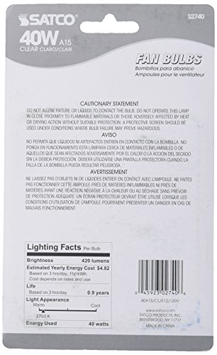 Satco S2740 120V Candelabra Base 40-Watt A15 Light Bulb, Clear