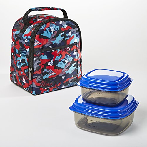 Fit & Fresh Aiden Insulated Lunch Bag with Reusable Container Set (Red Jungle Camo)
