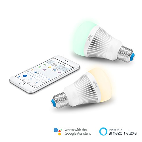 Pack of 2 WiZ Colors WiFi connected smart LED A-type E26 bulbs. Dimmable, 64,000 shades of white, 16 million colors. Compatible with Alexa and Google Home.