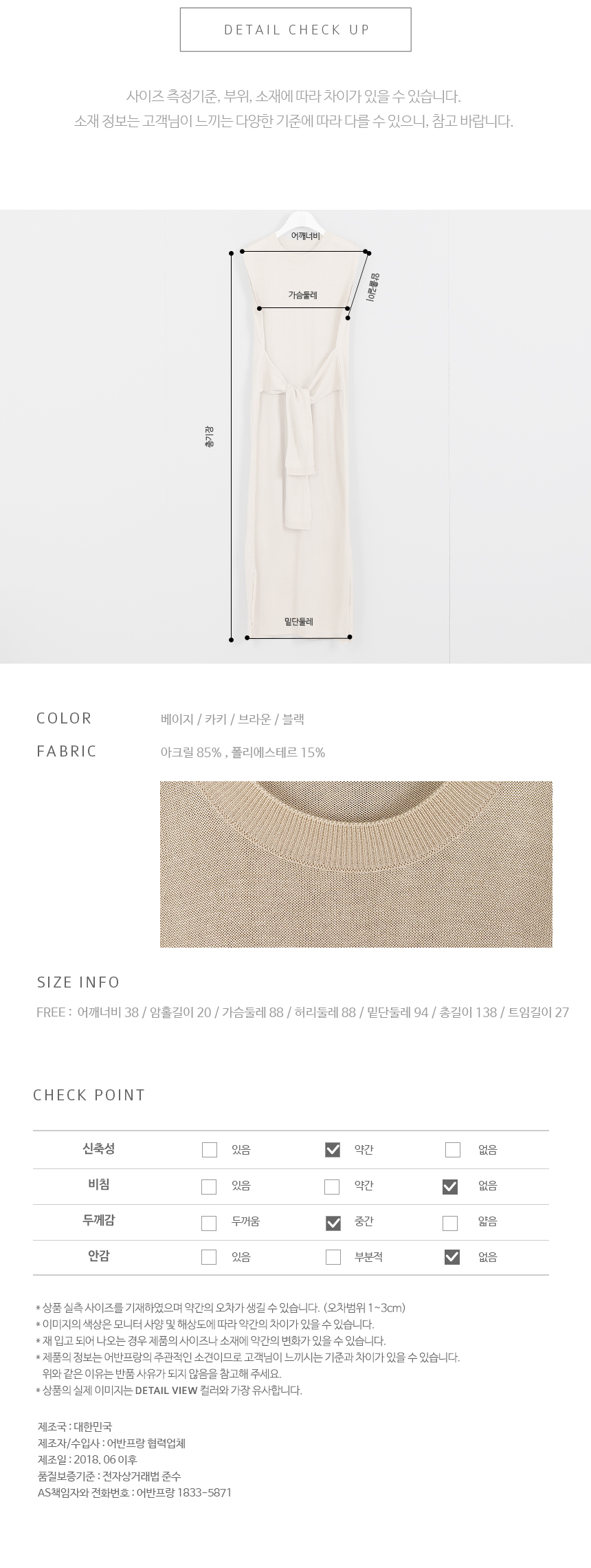 덥지 않고 시원한 소재의 롱 니트 원피스에요