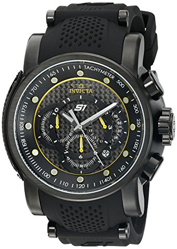 -. Title : Invicta 19324 Men's S1 Rally Chrono Yellow Accented Black Dial Steel & Silicone Strap Watch