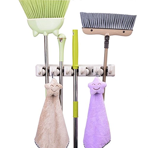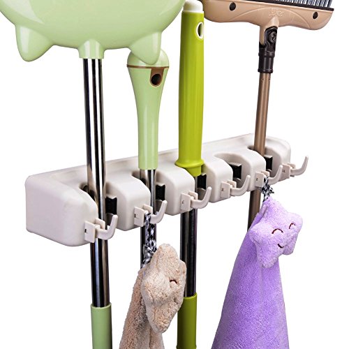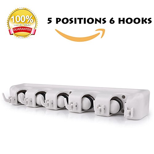 Mop and Broom Holder, 5 Position with 6 Hooks Holds Up to 11 Tools, Multipurpose Wall Mounted Garage Garden Kitchen Tool Organizer Hanger for Rake by JISIMI