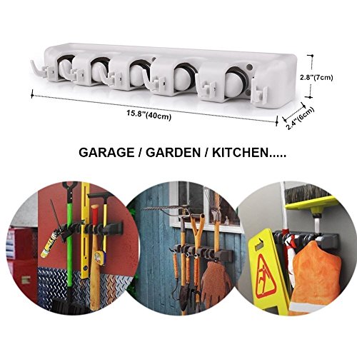 √ Indoors or Outdoors - Tidy up your broom, mop, rakes, tools and more! Perfect for the kitchen, closet, garage, office, great for commercial use, and thanks to the weatherproof design, this holder even works outdoors or on the shed for your garden tools!