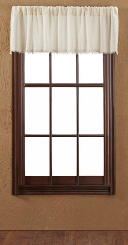 Our Tobacco Cloth Collection is inspired by historically accurate samples, traditionally used to cover the tobacco plant. Our unlined collection, available in 5 colors, is light and airy (similar to cheesecloth) and works well with all decor. This valance is made out of a 100% cotton tobacco cloth and comes unlined. This valance is accented with a .75" fringe. It measures 16" in height and 72" width with a 3.25" rod pocket.
