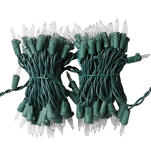 Total 26.5ft with 100 mini clear bulbs, 3" distance between each bulb, lead cord is 18" and end connector is 3".