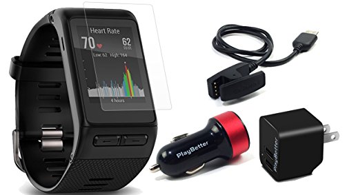 - BUNDLE INCLUDES: Garmin vivoactive HR (Regular - 5.39" to 7.68" wrist) Multi-Sport GPS Smartwatch, HD Clear Anti-Bubble Screen Protector Film (6-Pack), PlayBetter USB Car & Wall Charging Adapters, USB Charging Cradle