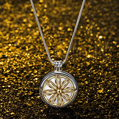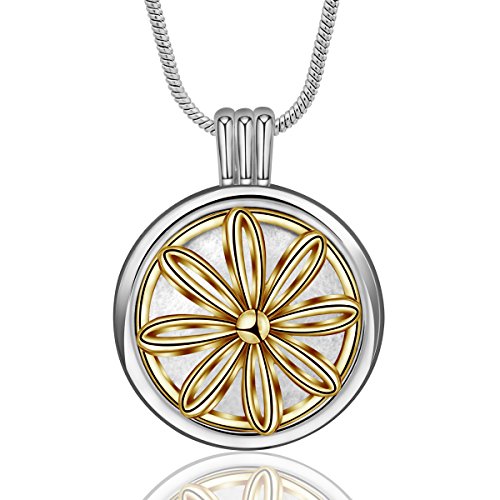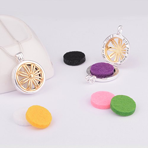 INFUSEU Daisy Flower Pendant Necklace Aromatherapy Essential Oil Diffuser Locket with 12PCS Refill Replacement Pads for Women Girl perfume Jewelry
