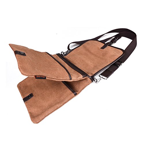 -. Feature : Dimension: Approx. 11.4"L x 1.9"W x 13.0"H, 1.52 lbs. / Material:high quality canvas & faux leather / Structure: 1 zip closure for main compartment, 2 pockets inside. 1 slip and 1 zip closure pockets with flap-over it in the front. / Crossbody bag has adjustbale shoulder straps. The durable design of the removable strap is easy to convert to a crossbody or shoulder handbag at your convenience. / Retro casual life style, large size with multiple pockets, ideal for keeping personal belongings and assorting things. Suitable to wear for school, work place and daily activities.