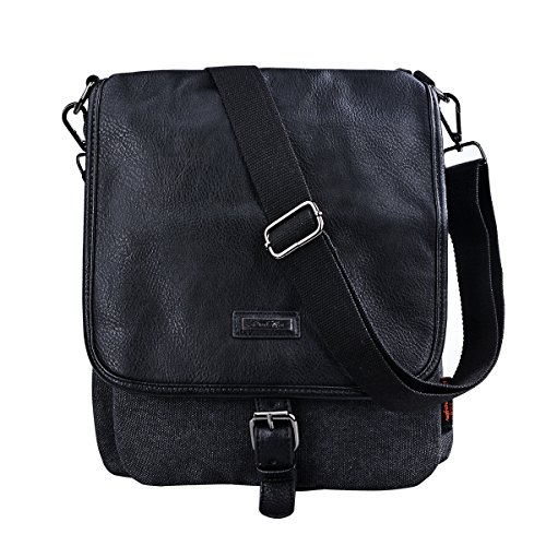 -. Title : DGY Men's Casual PU Leather Canvas Flap-over Crossbody Shoulder Bag Messenger G00236