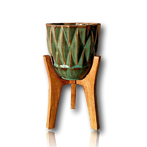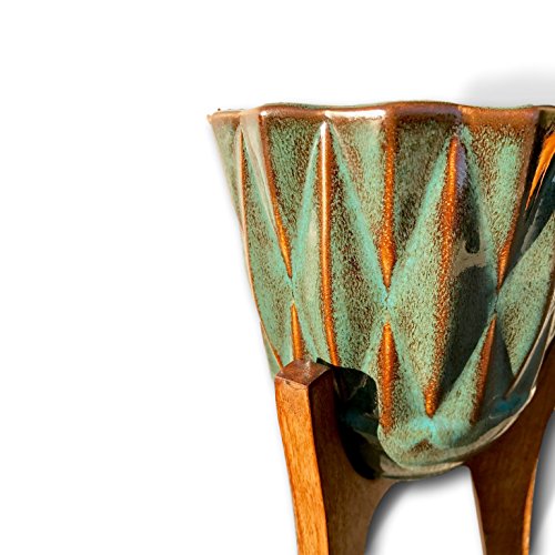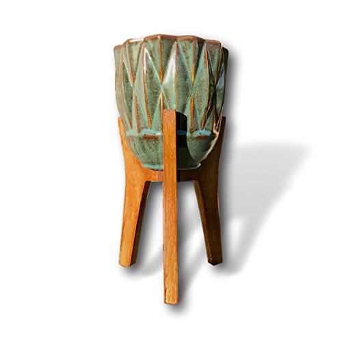MIDCENTURY MODERN DESIGN: This planter vase with stand is both stylish and useful to keep planters off of delicate surfaces. The planter with stand measures 7" x 6" x 13".