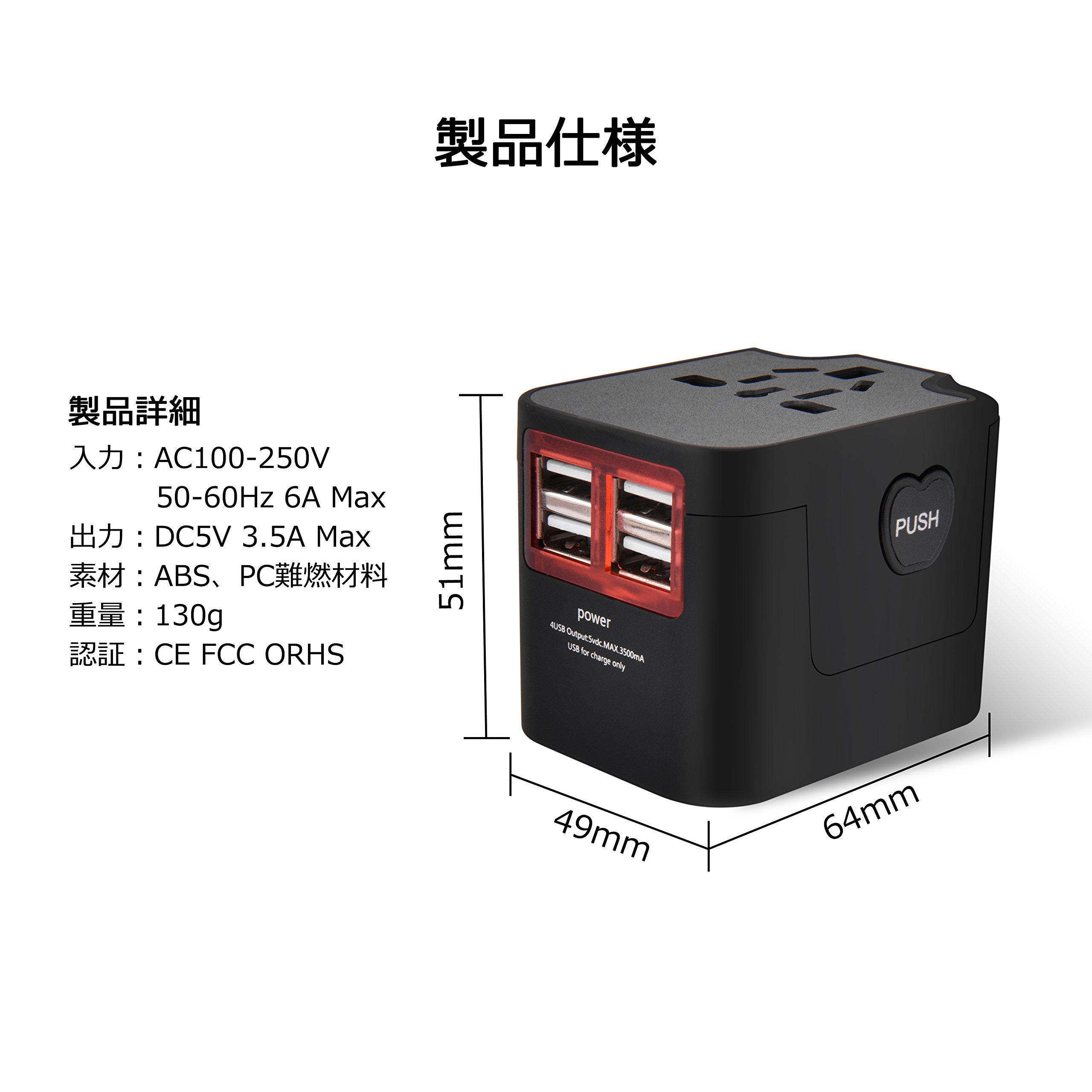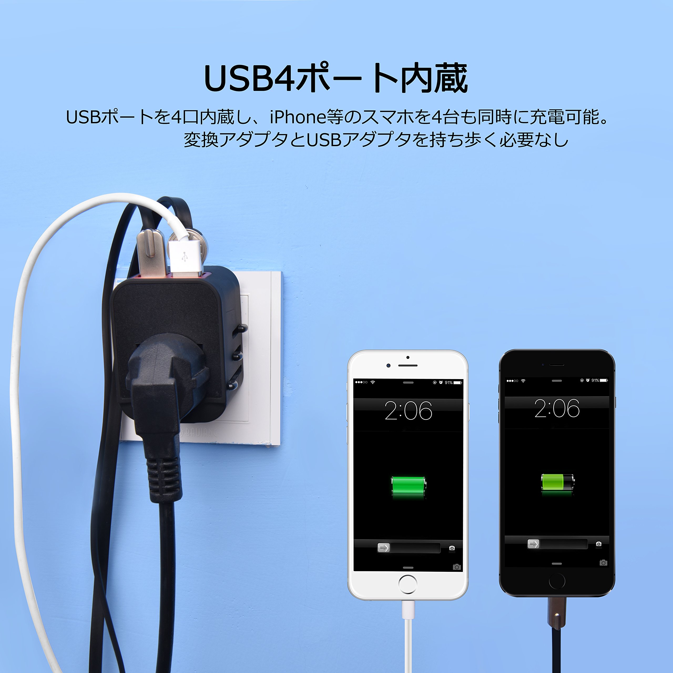 This conversion adapter has 4 USB ports (5 VDC 3.5 A MAX) and if you bring only this one, you can directly connect from iPhone, iPod, iPad, various smart phones, tablet, mobile Wi-Fi