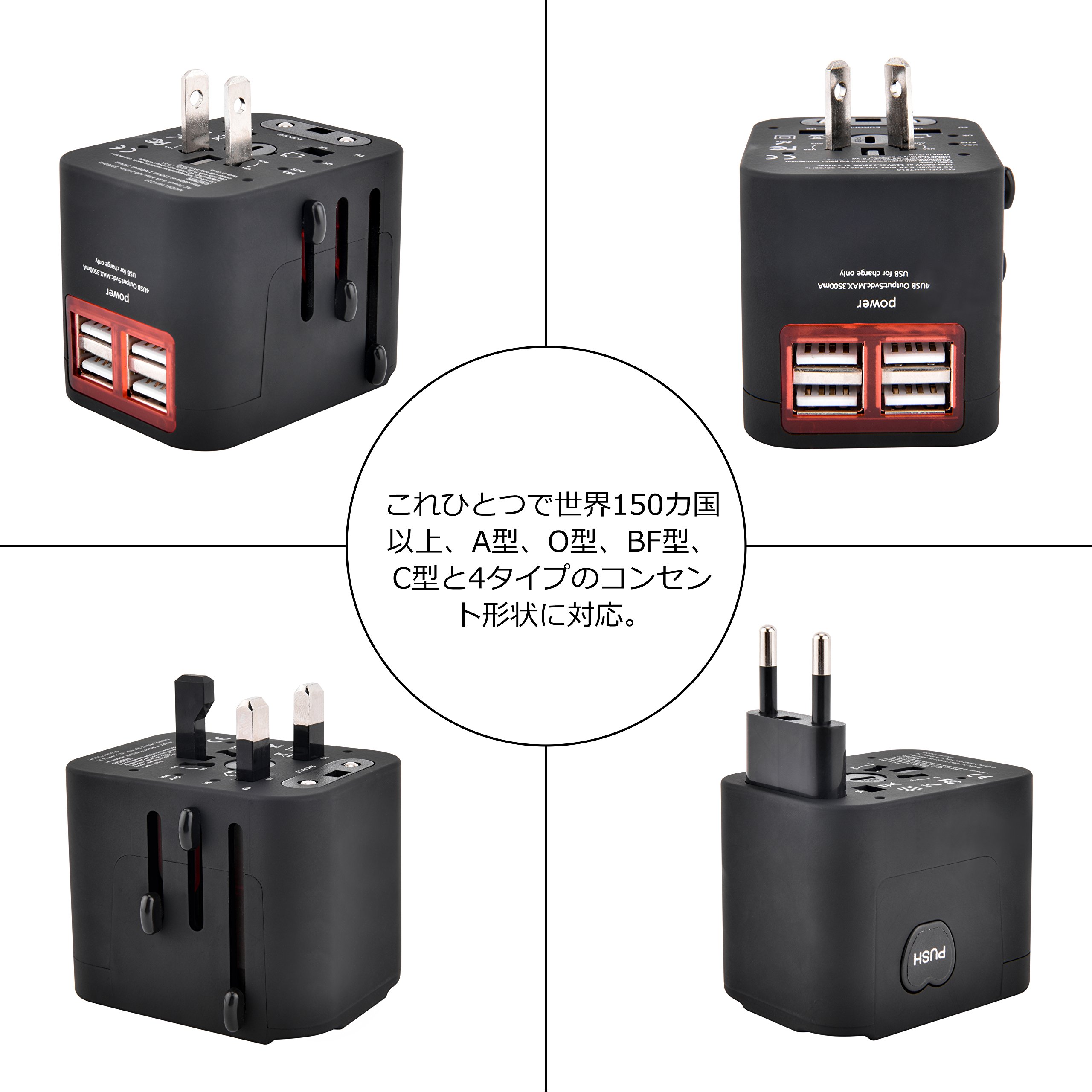 It corresponds to four types of outlet shapes, A type, O type, BF type, C type in this one, taking it from Japan in more than 150 countries including North America, the UK, the European Union, China, Japan and Australia