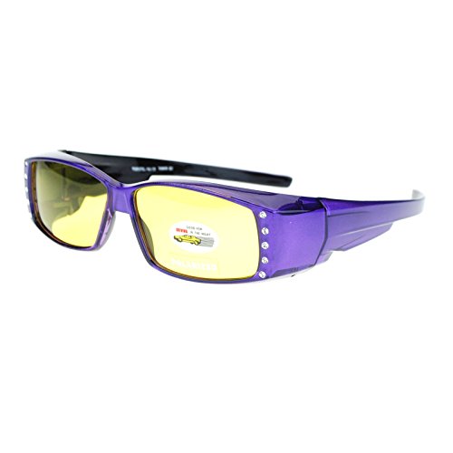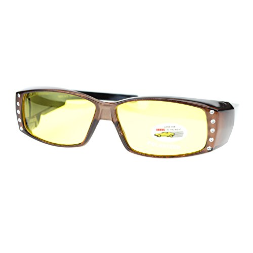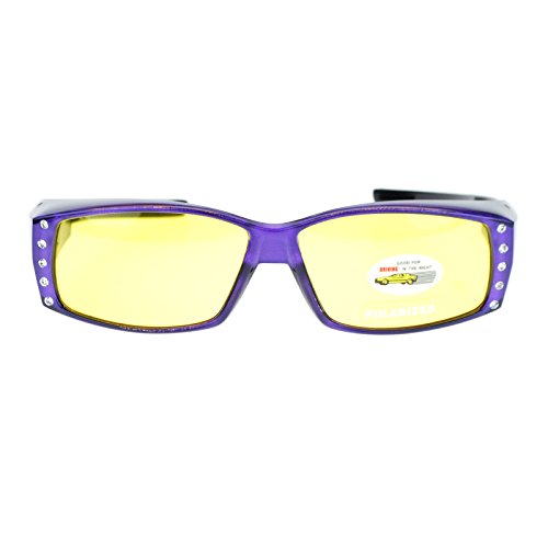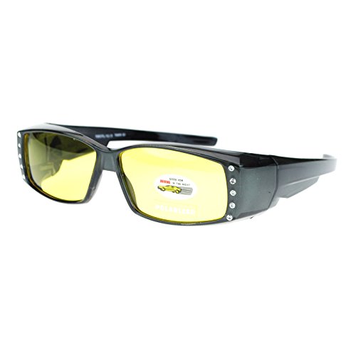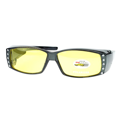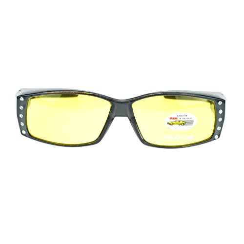 Womens Rhinestone Polarized Yellow Night Driving Lens Fit Over Sunglasses