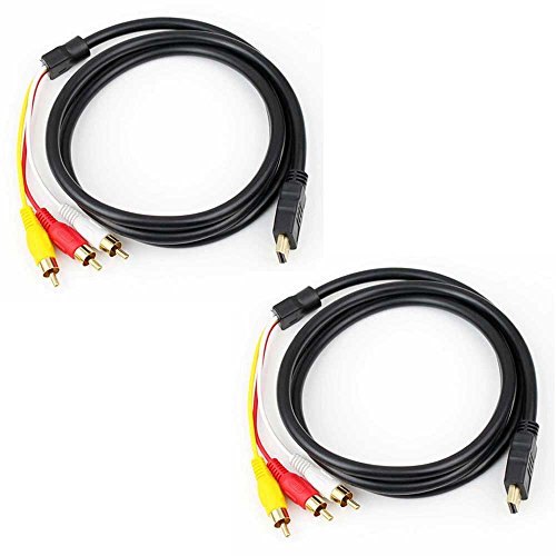 SlickBlue 5Ft 1.5m HDMI To 3-RCA Video Audio Signal Transmitter Male Extension Adapter Cable For HDTV DVD (Pack of 2)