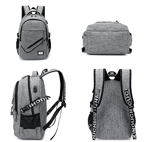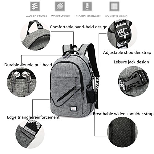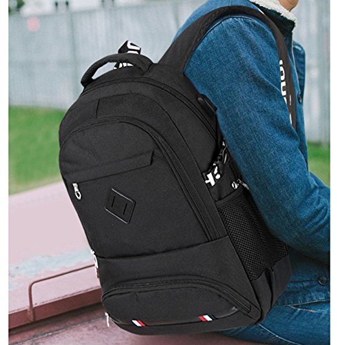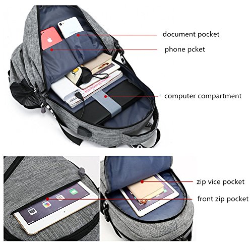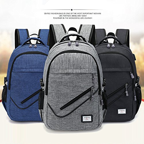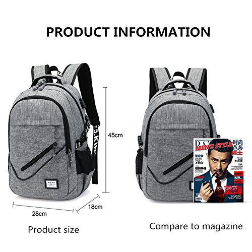 -. Feature : * DIMENSIONS - 18 x 11.8 x 7.4 inch with dedicated Laptop compartment holds Laptops less than 15.6 Inch. / * MAIN MATERIAL - This laptop backpack is made of Durable Eco-Friendly Oxford Fabric with Two "S" Curve Padded Shoulder Straps,Shoulder belt made of honeycomb breathable material,Ergonomic design ensures the dispersion of gravity of the backpack. / * LARGE CAPACITY - 3 MAIN pockets & 7INNER small pockets provides a separated space for your Laptop, iPhone, iPad, pen, keys, wallet, books, clothes,bottle and more. beside, there has a pocket at the back, very convenient and safe. / * USB ACCESS - Built-in USB cable. Use it to connect the power bank, then connect your phone with original USB cable to the USB port, you could charge your phone conveniently.Headphone Jack: you can listen to your favorite music on the go hands-free. / * 100% SATISFACTION GUARANTEE - We are committed to providing our customers with high-quality and affordable products. If for any reasons you are unhappy with your purchase, please contact us. We are committed to every customer offering highest standard of customer service!