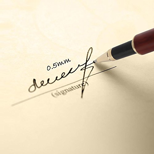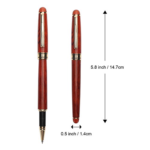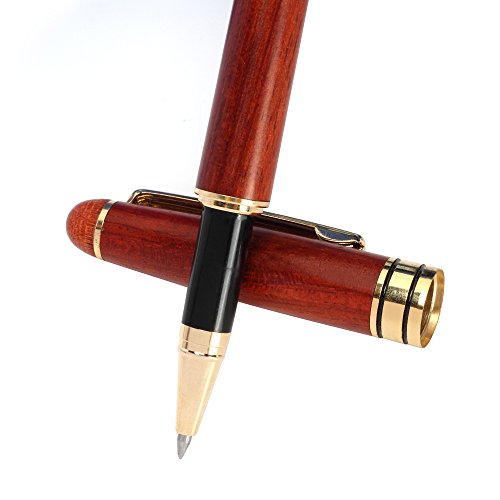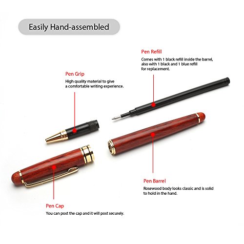 Rollerball Pen, MaleDen Vintage Rosewood Ballpoint Pen with 2 Black and 1 Blue Ink Refills, Medium Nib for Smooth Signature and Calligraphy, Black PU Leather Box as Perfect Business Gift