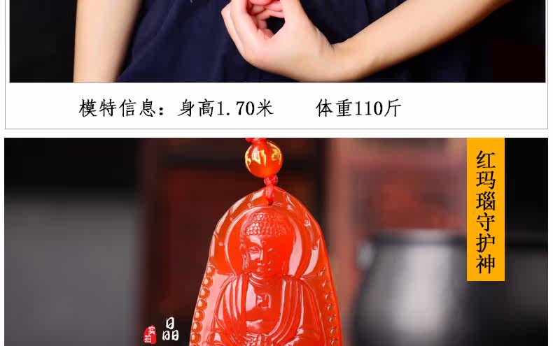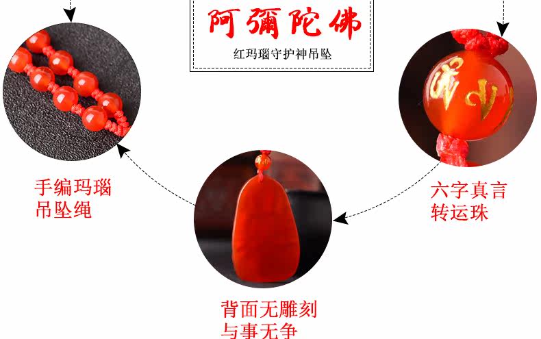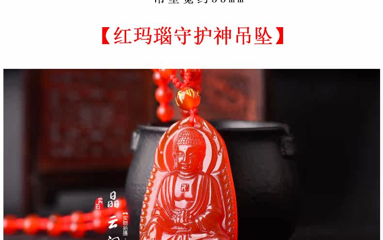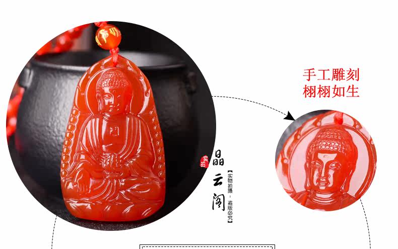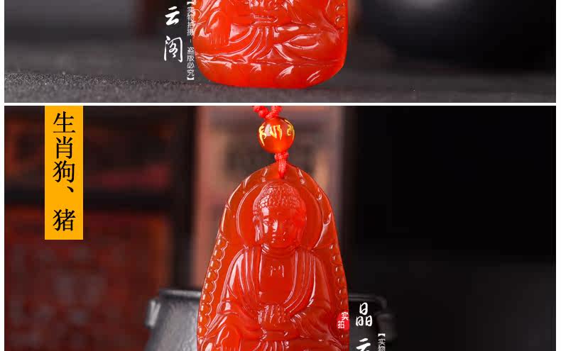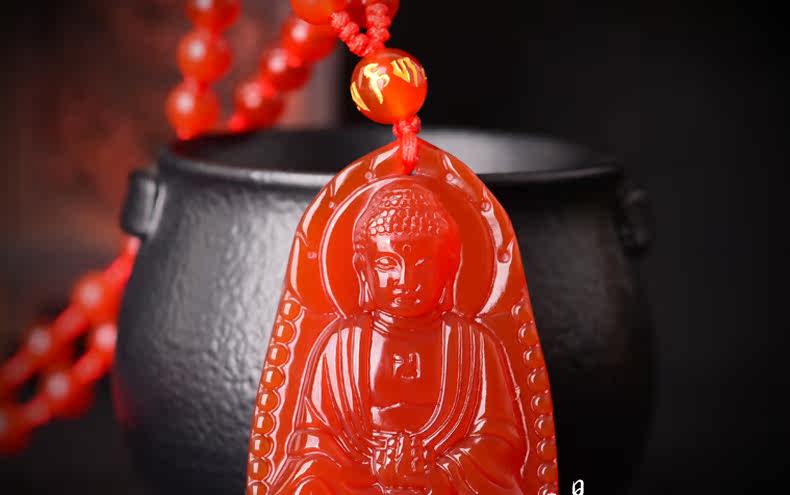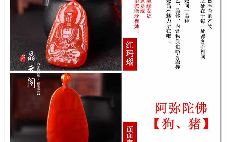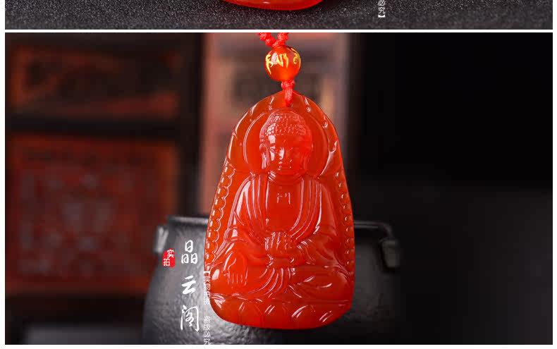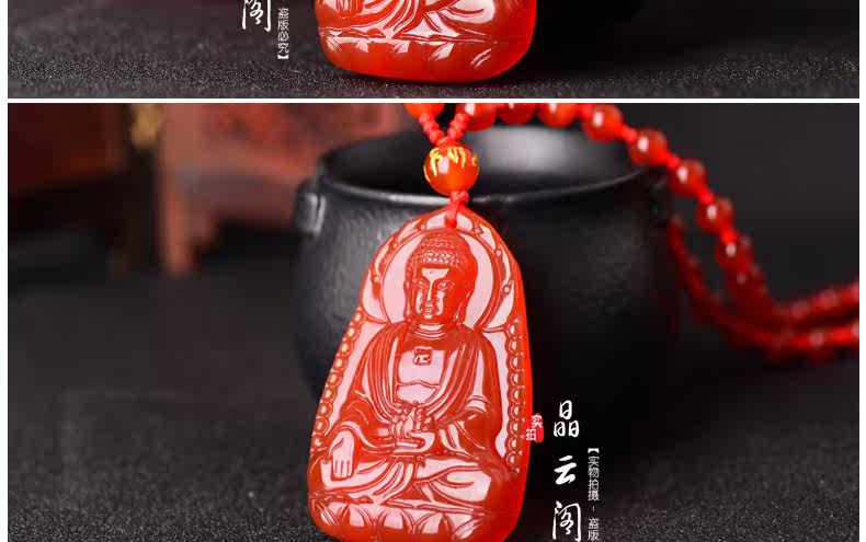 开光天然红玛瑙阿弥陀佛菩萨吊坠 生肖属狗猪本命佛男女士项链