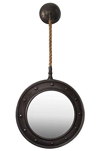 Urban Trends Metal Oval Wall Mirror with Pimpled Frame Design and Metal and Rope Hanger Brushed Finish Gunmetal Gray, Gunmetal Gray