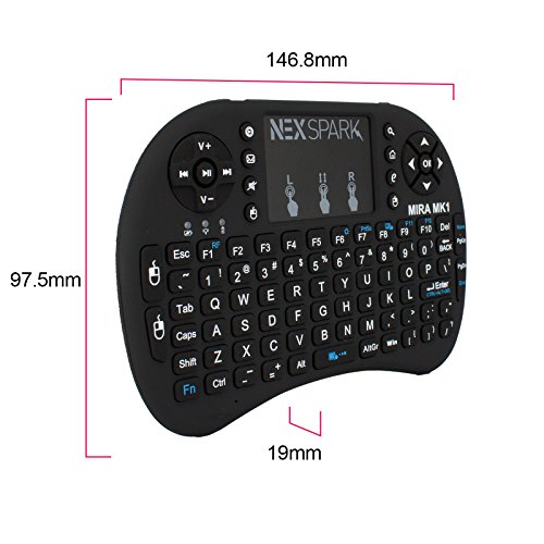 NEXspark Mira MK1 Mini Keyboard + Touchpad, Wireless USB Connect with Comfort Grip + Rechargeable Battery, Compatible with TVs, PCs, Game Consoles, Tablets, Android Boxes, IPTV Players