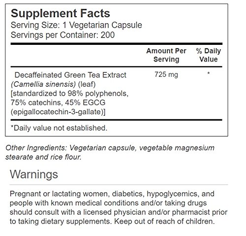 [Product Information]- Premium-quality green tea extract standardized to 45% EGCG, 98% polyphenols and 75% catechins. standardized extract ensures consistent levels of active ingredients in every dose