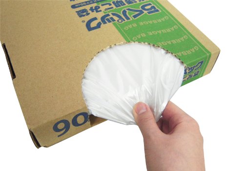 半透明90Lの100枚入り(箱入)。