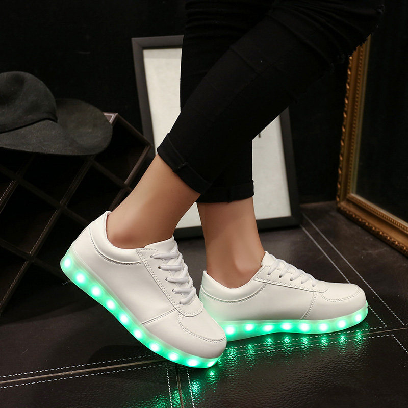 Charging port on the inside of the shoes I tie his highest hole next to the button in front of the charging hole, hidden inside the sandwich, USB charging five hours, you can use 9-12 hours, charging soles flashing red light that is charging, when the green light , said that it has full
