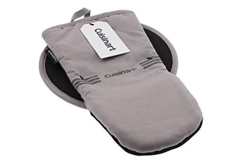 Cuisinart Puppet Oven Mitt & Round Potholder Set w/Neoprene for Easy Gripping, Heat Resistant up to 500 degrees F, Grey