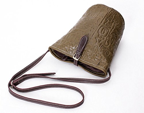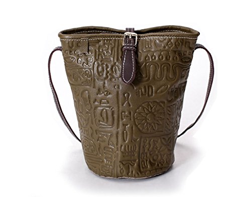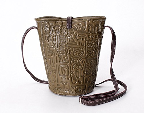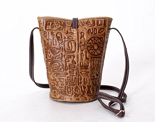 -. Title : La Poet Women's Vintage Embossed Calfskin Leather Cross Body Bucket