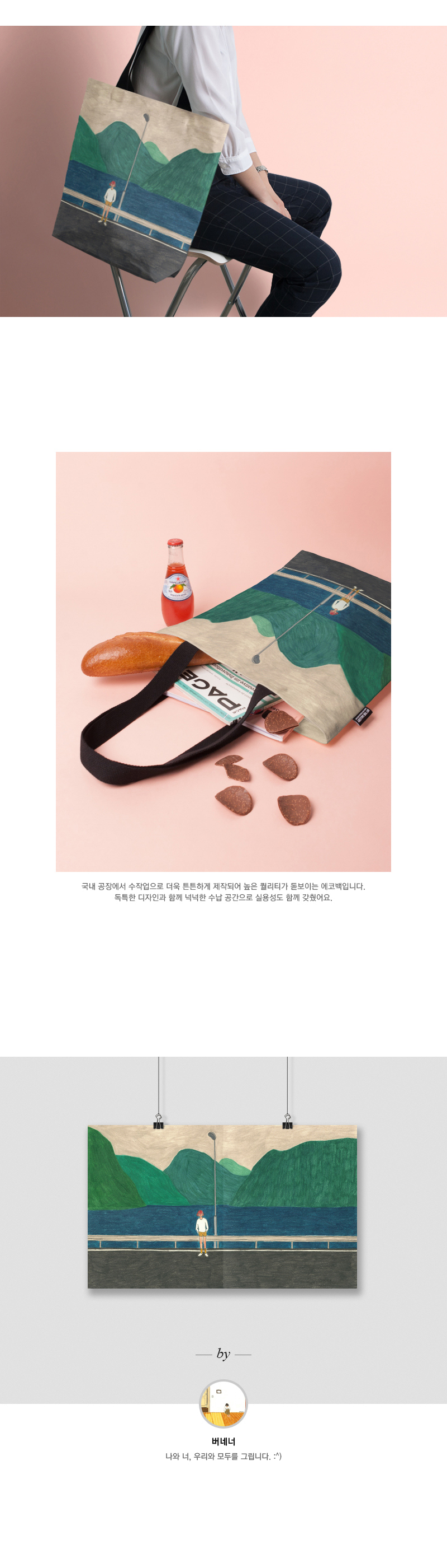 아티스트 버네너의 감성적인 일러스트로 제작된 에코백입니다.