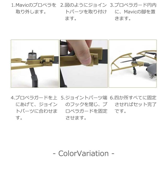 | 特長 | DJIMAVIC専用の弓型プロペラガード!プロペラから人や物を保護します。 |