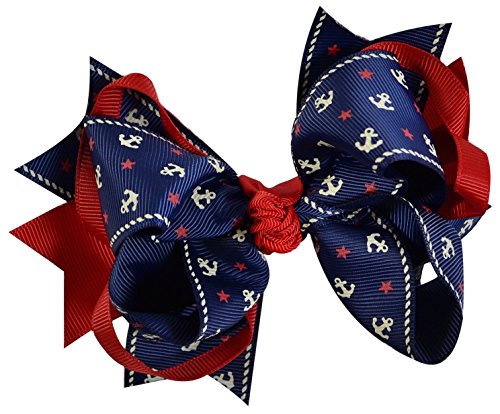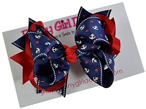 Product DescriptionFunny Girl Designs 5.5 inch Grosgrain Ribbon Nautical Theme Loopy Hair Bow0