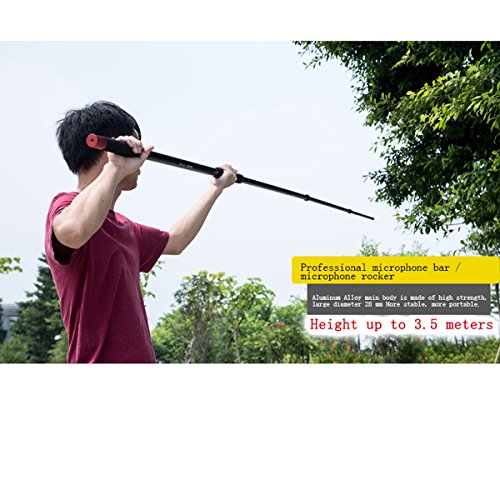 -. Feature : The max length is 11.5 ft (3.5 meter) / Ergonomically spaced and comfortable EVA rubber hand grips. (1) Fixed handgrip at base of pole, (1) slidable hand grip allows for custom set-ups. / Three telescopic rods extend the boom length from 3.1-11.5'.Length settings lock/unlock utilizing a twist-and-lock system. / Standard 5/8"-27 threads with solid brass male end and internal 3/8"-16 threads. / For Rode NTG-1, NTG-2, NTG-3, NTG-4 , Audio-Technica AT897, ATR6550, Sennheiser MKH-416, ME66/K6, MKE-600, Azden SGM-1X, Sony ECM-CG50 etc.