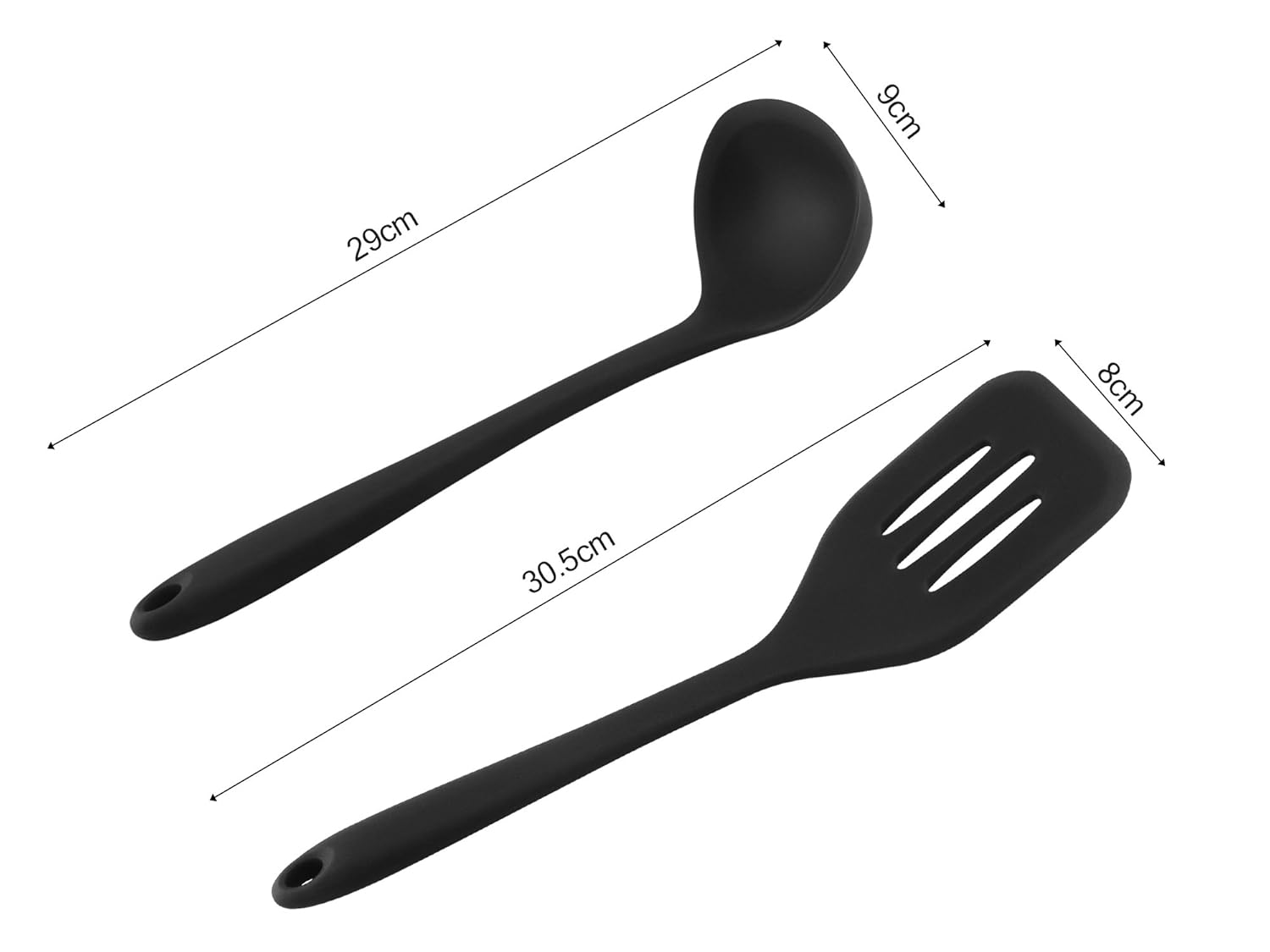 ♥快適に使えるーーハンドル部分には、シリコン質の上にもう一層のナイロンコアがあって、ハンドルの強度を高めて変形しません!柔らかくて掴みやすいし、自体のほどよい重みあり、丁度の長さで手を油から守って、楽々にクッキングできます。穴あきのハンギング式、コンパクトに収納できます。